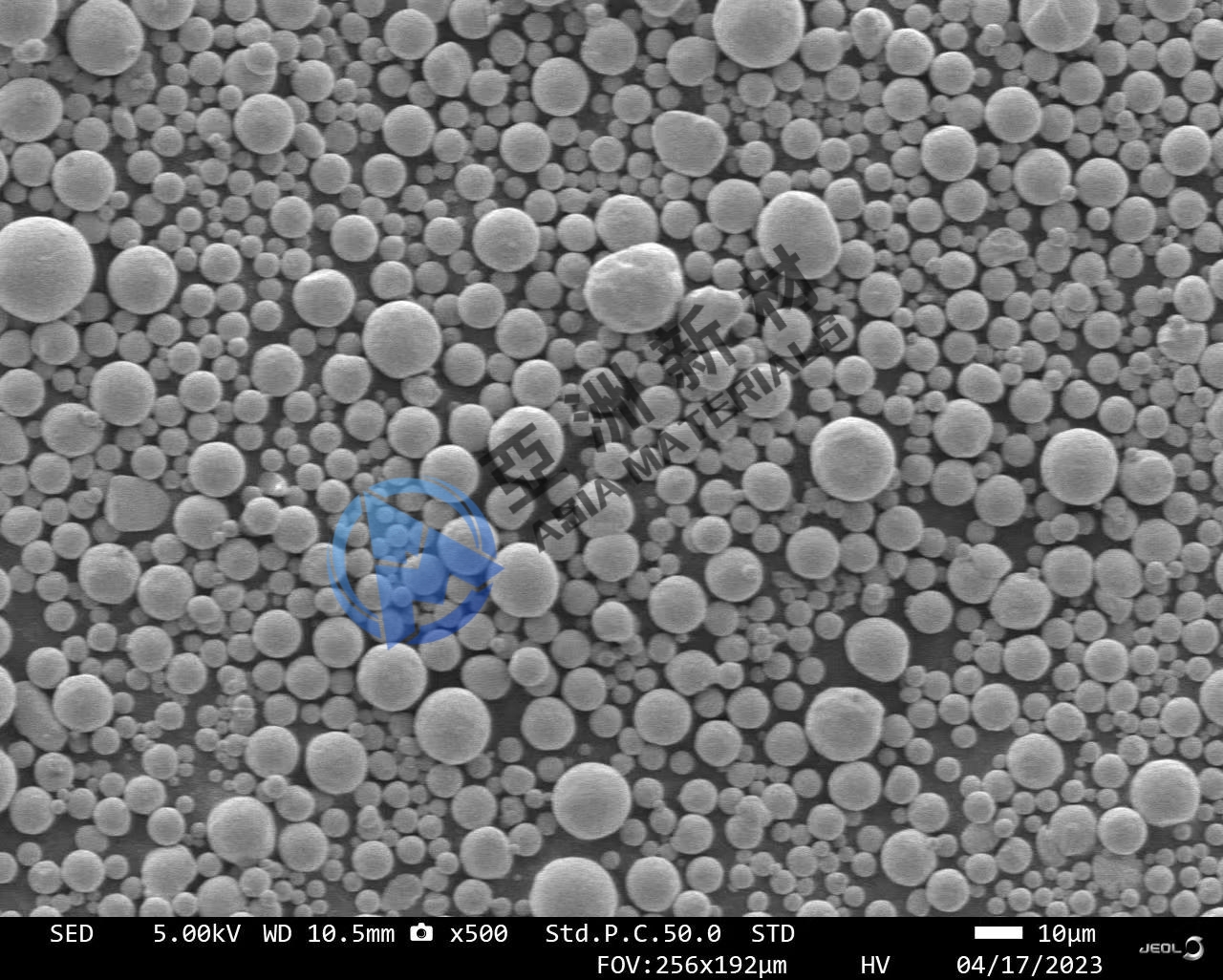牌号 | 粒径/μm | 工艺类型 | 形貌 | 松装密度g/cm3 | 流动性s/50g | 氧含量ppm | Cu | 0-20μm 15-53μm 45-105μm 53-150μm | A法 | 近球形 | ≥4.60 | ≤25 | ≤500 | CuSn10 | A法 | 近球形 | ≥4.10 | ≤20 | ≤500 | QCr0.5 | A法 | 近球形 | ≥4.50 | ≤25 | ≤500 | QCr0.8 | A法 | 近球形 | ≥4.50 | ≤25 | ≤500 | CuCrNb | A/P法 | 近球形 | ≥4.50 | ≤25 | ≤500 | CuCrZr | A法 | 近球形 | ≥4.50 | ≤25 | ≤500 | CuAl10Fe5Ni5 | A法 | 近球形 | ≥4.50 | ≤25 | ≤500 |